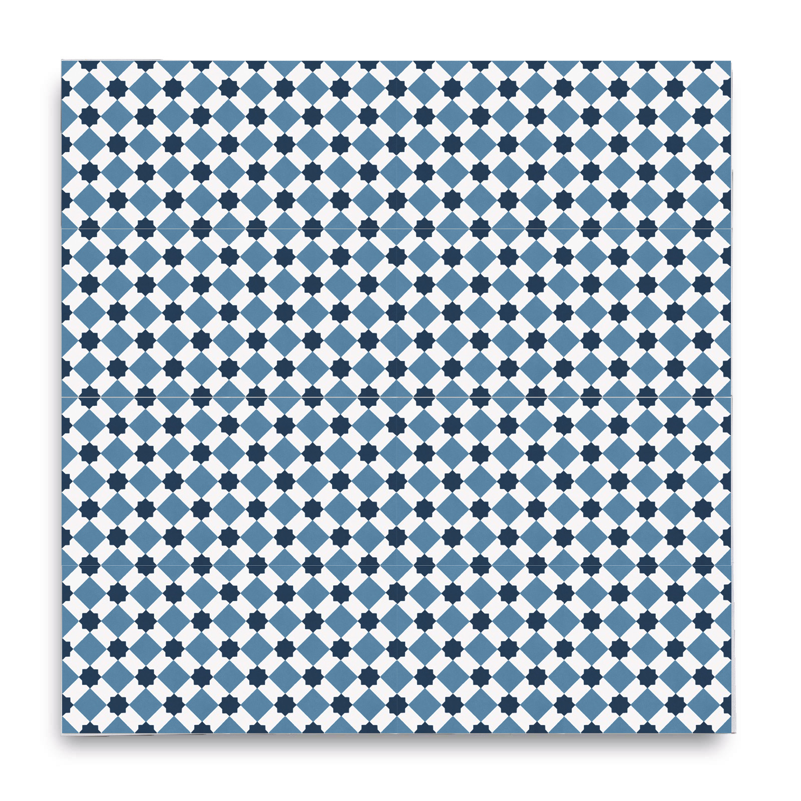Véritable carreau ciment avec son motif aux couleurs blanc U8, céladon U35, bleu nuit U50.
